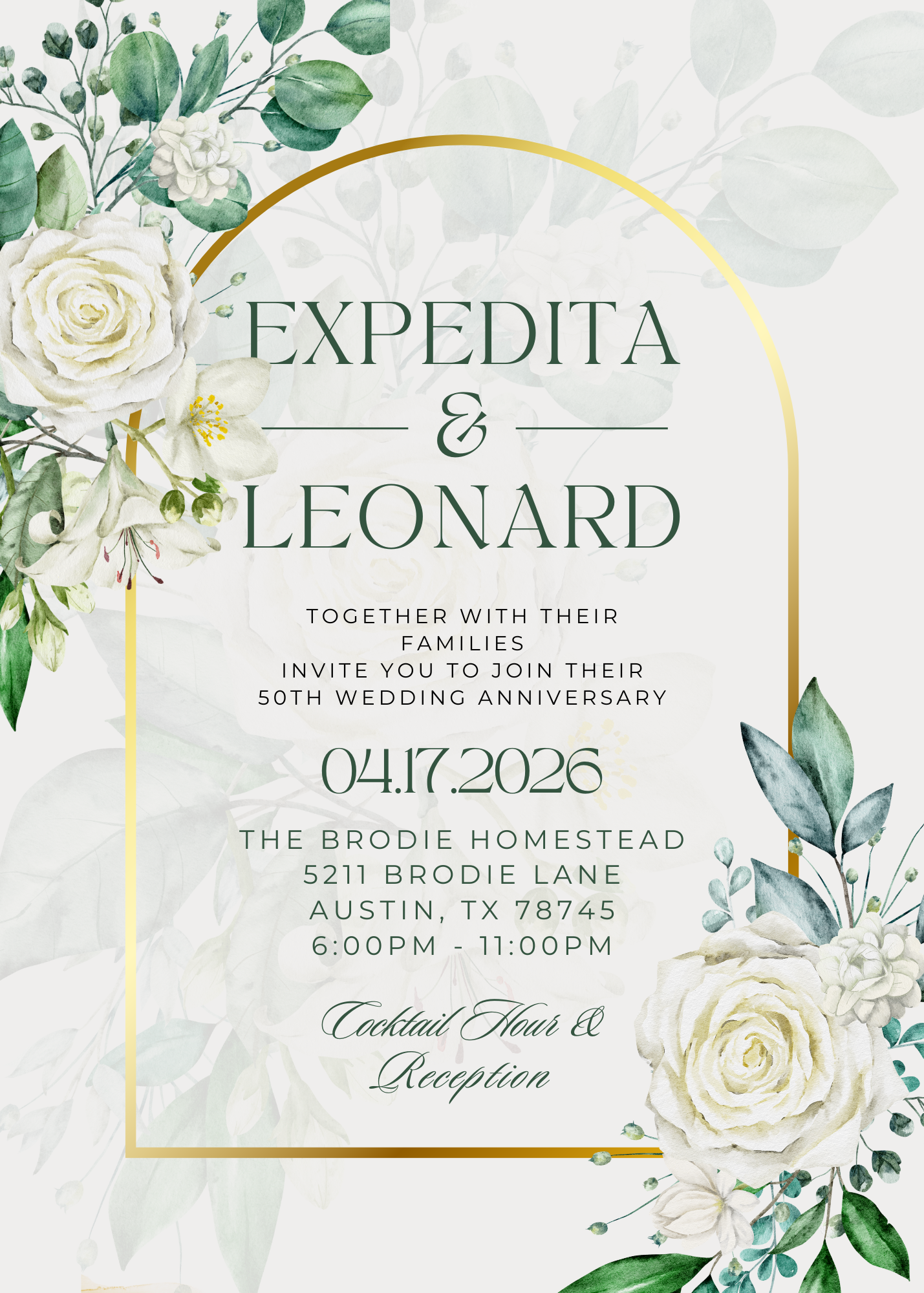 We are honored to welcome you to Austin to celebrate the Golden Anniversary of our parents. Please see below for the weekend schedule.